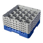 This Cambro 20S800168 blue customizable 20 compartment full size Camrack is the perfect solution for items that are too big for the 25 compartment racks and too small for the 16 compartment racks! Use it to wash, store, and transport large diameter beverage and cocktail glasses, delicate wine stems with oversize bowls, goblets, most rocks glasses, and other items with a diameter of up to 3 7/8", standing up to 8 1/2" in height. Included is (1) gray 20GE1 extender, (3) gray 20GE2 extenders and (1) blue BR258 base rack.