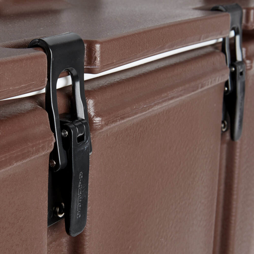 Polyethylene foam insulation ensures excellent temperature retention, hot or cold, for hours. At the same time, a vent cap helps to equalize pressure and release steam. Recessed plastic latches on the top of the dispenser further assist in temperature maintenance, and will not rust or corrode, ensuring longevity. These latches are protected by molded-in mount plates that prevent that latches from pulling out.