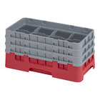 Each Cambro 8HS638119 8 compartment half size Camrack is made of long-lasting polypropylene. Their easy-to-handle design features a 1/2" overlap and smooth sides. Rounded handles on all four sides allow for a tight grip, further accentuated by smooth sides and rounded corners to reduce the risk of injury.