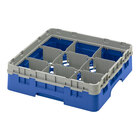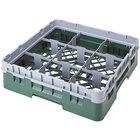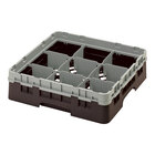 This Cambro 9S318110 black customizable 9 compartment full size Camrack is perfect for washing, storing, and transporting large brandy snifters, grande margaritas, carafes, and other items with a diameter of up to 5 7/8", standing up to 3 5/8" in height. Included is (1) gray 9E1 extender and (1) black BR258 base rack.