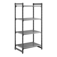 This brushed graphite colored sheet pan rack is made from reinforced, high-impact plastic that is incredibly durable and lightweight. A great alternative to wire or aluminum racks, it prevents both rust and corrosion. This rack also comes with a universal top clip that secures single shelf racks together or to the shelving posts they're stored on. Shipped knockdown, the rack easily snaps together for quick and convenient assembly.