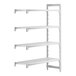 As part of the Cambro Camshelving® Premium modular shelving system, this Cambro CPA184864V4480 includes everything you need to build a complete add-on shelving unit with four vented shelves, perfect for attaching to your existing Camshelving® Premium unit.