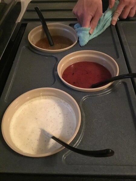 We purchased these to hold our salad dressings and they work wonders. They are easy to use, clean, and store. Our customers give us great compliments on these and look forward to purchasing more to replace these pesky divider bars.
