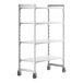 This Cambro CPHU244875S4480 four-shelf mobile shelving unit includes 4 high density casters.