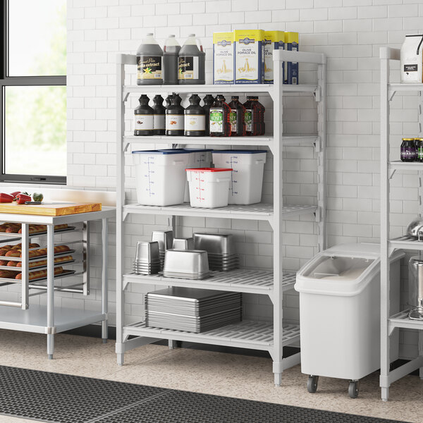 With vented shelves to provide optimum air flow and Camguard antimicrobial coating to keep stored items clean, this vented shelving system comes with all of the features you expect in a Camshelving® product. This shelving unit includes (4) 72" posts, (5) 24" x 42" shelves, 10 traverses, pre-installed post connectors and wedges, and matching dovetails. You'll have everything you need to start building this versatile and efficient shelving system right out of the box.