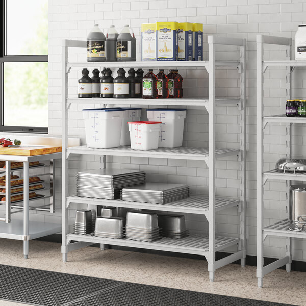 With vented shelves to provide optimum air flow and Camguard antimicrobial coating to keep stored items clean, this vented shelving system comes with all of the features you expect in a Camshelving® product. This shelving unit includes (4) 72" posts, (5) 24" x 54" shelves, 10 traverses, pre-installed post connectors and wedges, and matching dovetails. You'll have everything you need to start building this versatile and efficient shelving system right out of the box.