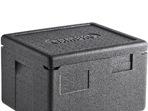 Light weight alternative to the traditional Cambro food pan carriers. Just note do not put them close to a heat source or put a smoking hot pan on or in them. They do melt. My staff prefers using these boxes because they are feather light and look very professional compared to coolers for catering.