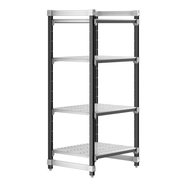 Effortlessly store and transport your products with the Cambro Camshelving® Elements XTRA EXU243064V4480 vented shelving unit with 4 shelves! With vented shelves to provide optimum air flow and Camguard antimicrobial coating to keep stored items clean, this vented shelving system comes with all of the features you expect in a Camshelving® product. Equipped with 4 posts, pre-installed post connectors and wedges, 16 dovetails, 4 shelves, and 8 universal traverses, you'll have everything you need to start building this versatile and efficient shelving system right out of the box. Plus, this kit boasts a 50% decrease in the number of pieces compared to its former Elements standard kit counterpart, and no weight capacity is lost with kits that are attached to add-on kits.