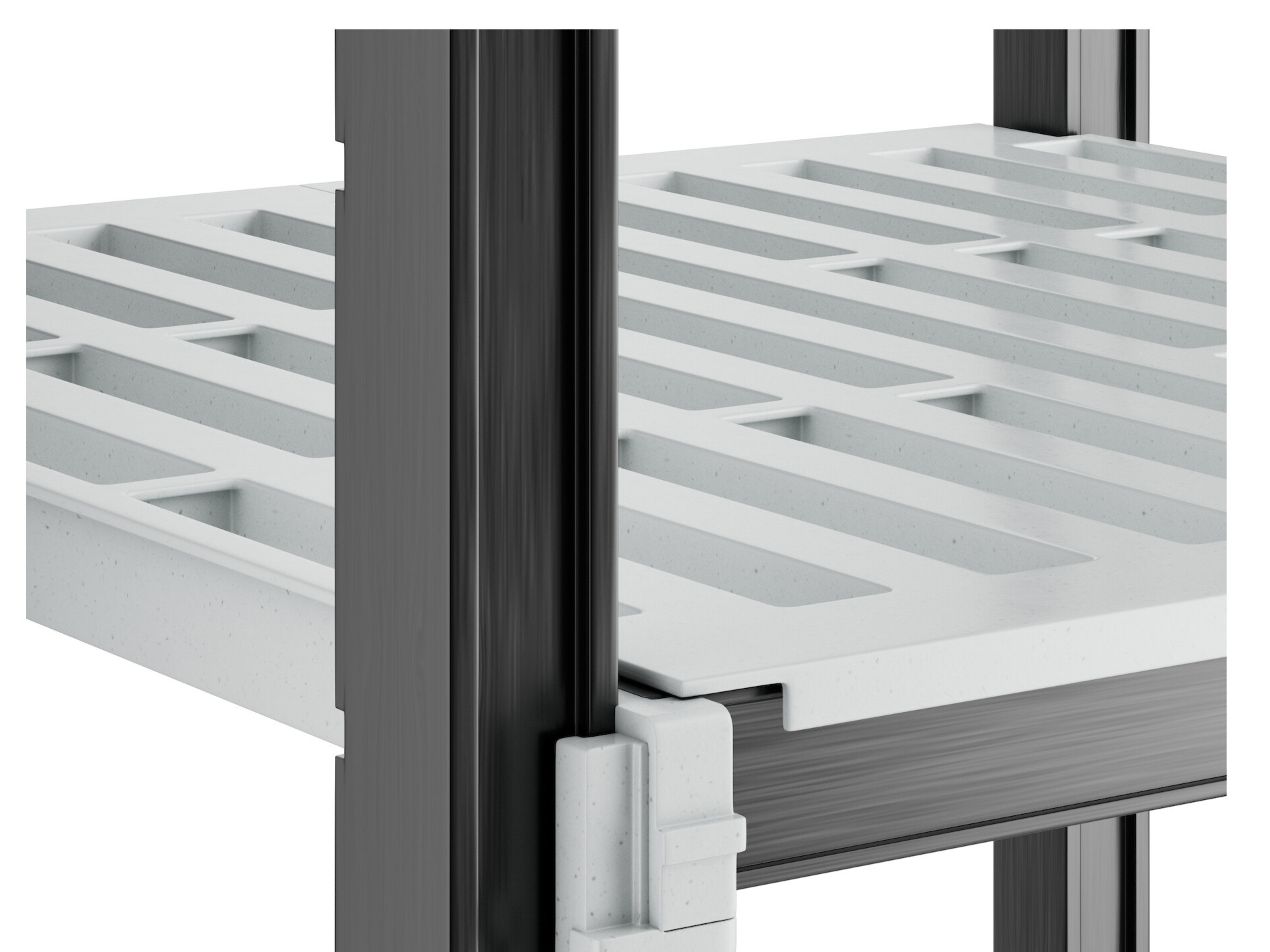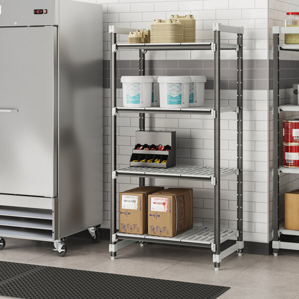 With vented shelves to provide optimum air flow and Camguard antimicrobial coating to keep stored items clean, this vented shelving system comes with all of the features you expect in a Camshelving® product. Equipped with 4 posts, pre-installed post connectors and wedges, 16 dovetails, 4 shelves, and 8 universal traverses, you'll have everything you need to start building this versatile and efficient shelving system right out of the box. Plus, this kit boasts a 50% decrease in the number of pieces compared to its former Elements standard kit counterpart, and no weight capacity is lost with kits that are attached to add-on kits.