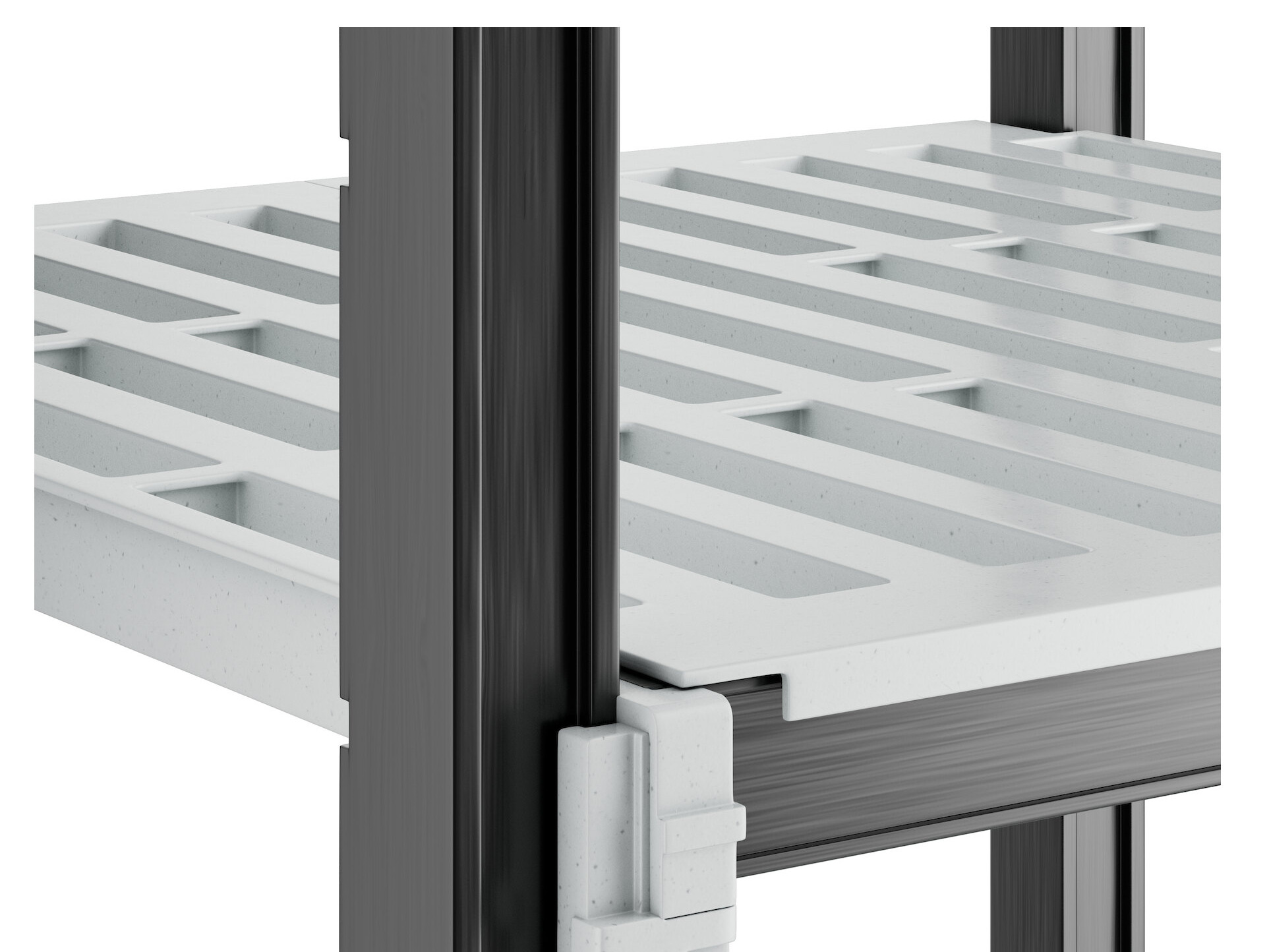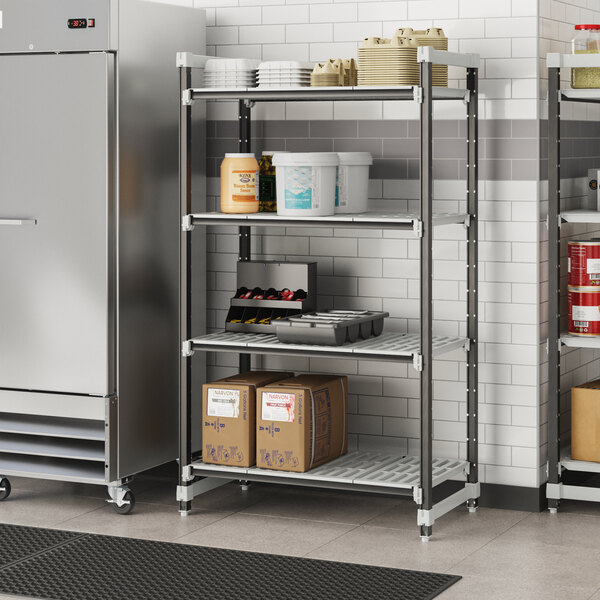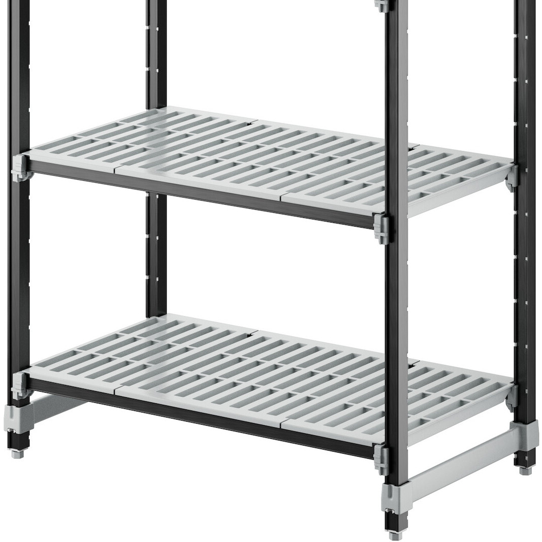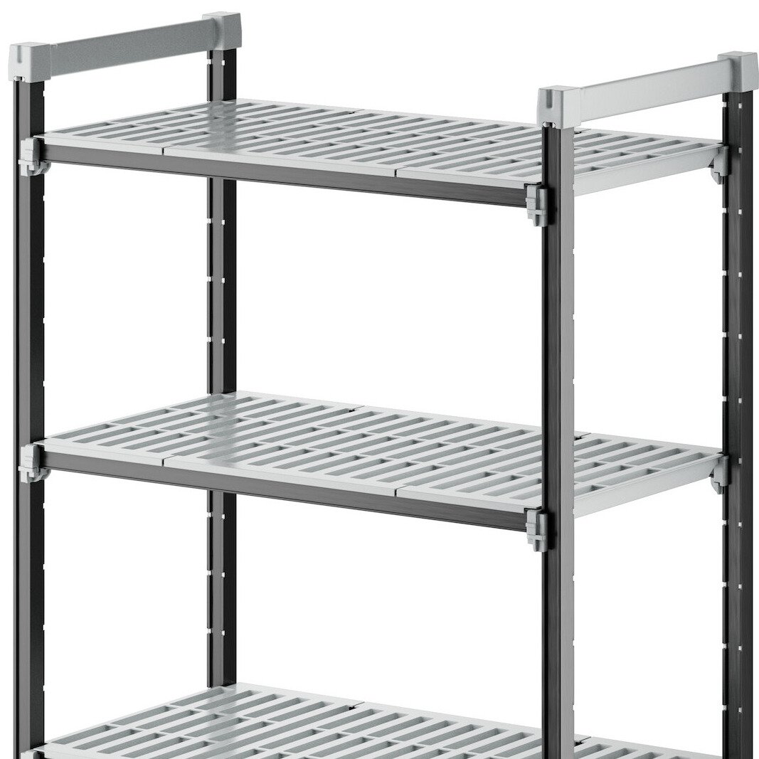 With vented shelves to provide optimum air flow and Camguard antimicrobial coating to keep stored items clean, this vented shelving system comes with all of the features you expect in a Camshelving® product. Equipped with 4 posts, pre-installed post connectors and wedges, 16 dovetails, 4 shelves, and 8 universal traverses, you'll have everything you need to start building this versatile and efficient shelving system right out of the box. Plus, this kit boasts a 50% decrease in the number of pieces compared to its former Elements standard kit counterpart, and no weight capacity is lost with kits that are attached to add-on kits.