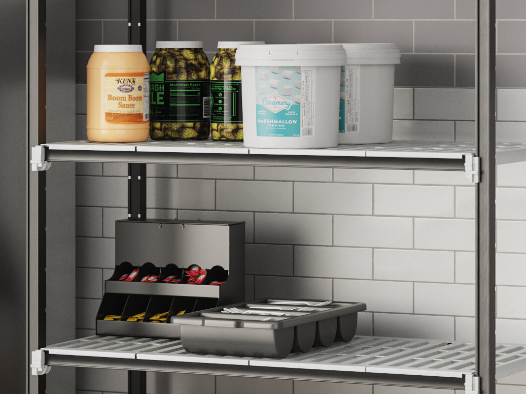 In addition, the vented shelf design promotes greater air circulation and product visibility which will come in handy in refrigerated storage applications.