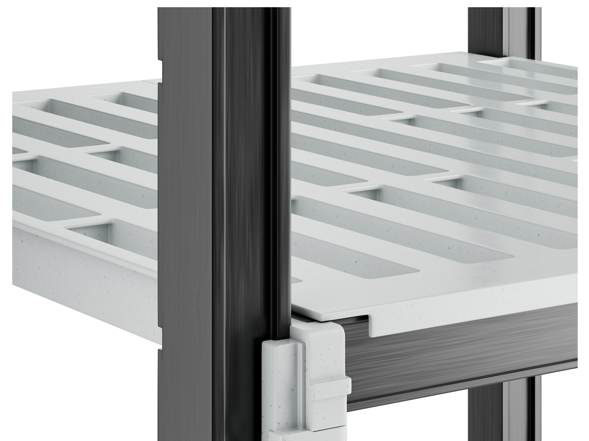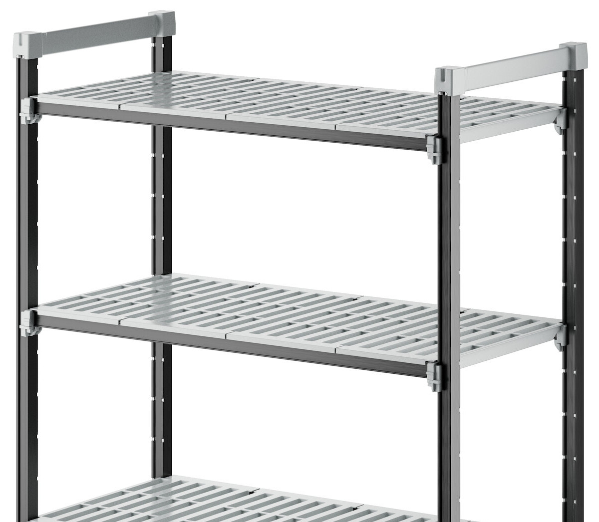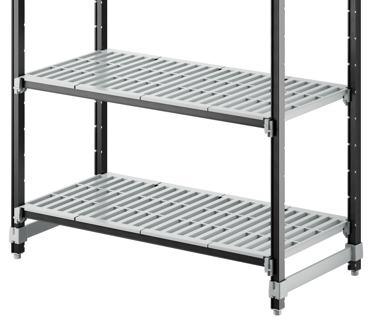 With vented shelves to provide optimum air flow and Camguard antimicrobial coating to keep stored items clean, this vented shelving system comes with all of the features you expect in a Camshelving® product. Equipped with 4 posts, pre-installed post connectors and wedges, 16 dovetails, 4 shelves, and 8 universal traverses, you'll have everything you need to start building this versatile and efficient shelving system right out of the box. Plus, this kit boasts a 50% decrease in the number of pieces compared to its former Elements standard kit counterpart, and no weight capacity is lost with kits that are attached to add-on kits.