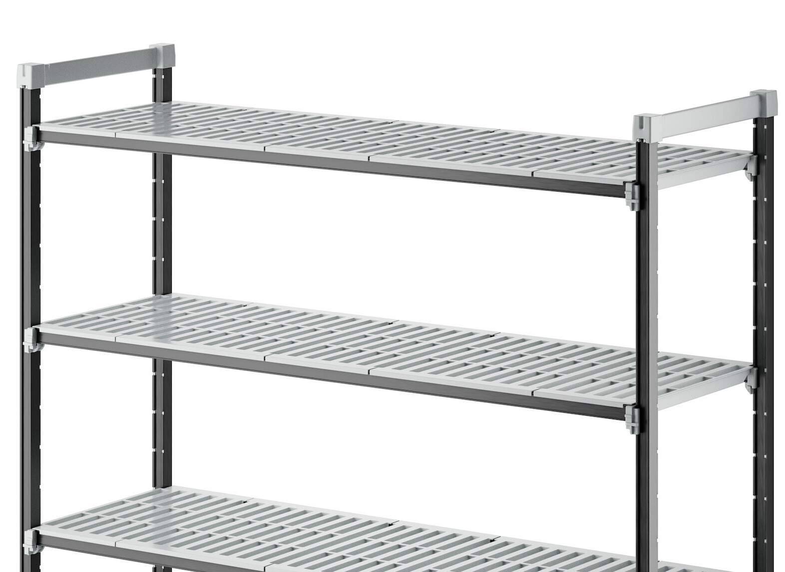 With vented shelves to provide optimum air flow and Camguard antimicrobial coating to keep stored items clean, this vented shelving system comes with all of the features you expect in a Camshelving® product. Equipped with 4 posts, pre-installed post connectors and wedges, 16 dovetails, 4 shelves, and 8 universal traverses, you'll have everything you need to start building this versatile and efficient shelving system right out of the box. Plus, this kit boasts a 50% decrease in the number of pieces compared to its former Elements standard kit counterpart, and no weight capacity is lost with kits that are attached to add-on kits.