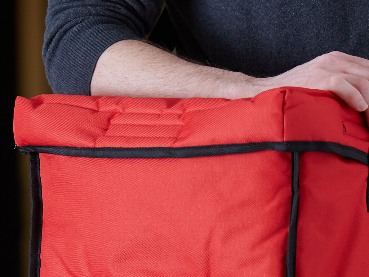 This bag folds down completely flat, taking up minimal space when not in use and making storage a breeze. It is built with an extra long hook and loop fastener to make sure your delicious pizzas and sandwiches stay in place for the duration of the delivery service. This secure closure also ensures optimal heat retention.