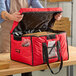 Make sure your food delivery service is offering up piping hot pizza and wings or fresh cold subs and sandwiches, ready to eat at the ideal temperature. With the Cambro GBD181412521 insulated red jumbo delivery GoBag® you can do exactly that and boost delivery sales in the process with a product just as good as dine-in quality! High-quality materials and sturdy construction are essential to protecting your food quality and temperature from the kitchen to the customer. From the time the food is prepped to the moment it reaches the customer's doorstep, every second counts, keeping your food fresh. With thick, sturdy nylon fabric lined with high-density, recycled PET (polyethylene terephthalate) insulation, this bag will keep your signature items your customers crave at the appropriate temperature.