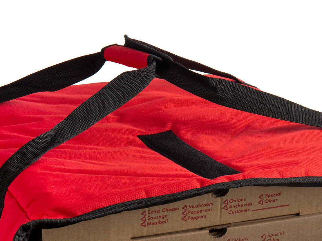 The nylon carrying handle and heavy-duty, sewn-in straps will support the weight of a full bag, allowing a comfortable grip without digging into the carrier's hands and preventing tearing and ruined, dropped pizzas.
