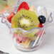 Thanks to its fun swirl design, this 5 oz. Cambro SRB5152 clear, plastic swirl bowl is perfect for creating exciting presentations with hot or cold items, including everything from side dishes to desserts, dips, fruit cocktails, and more! The Cambro SRB5152 swirl bowl is made of break-resistant SAN plastic, making it extremely versatile and even suitable for repeated use.