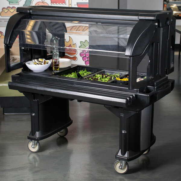 Streamline your buffet with this Cambro VBR5110 black 5' Versa food / salad bar with standard casters!