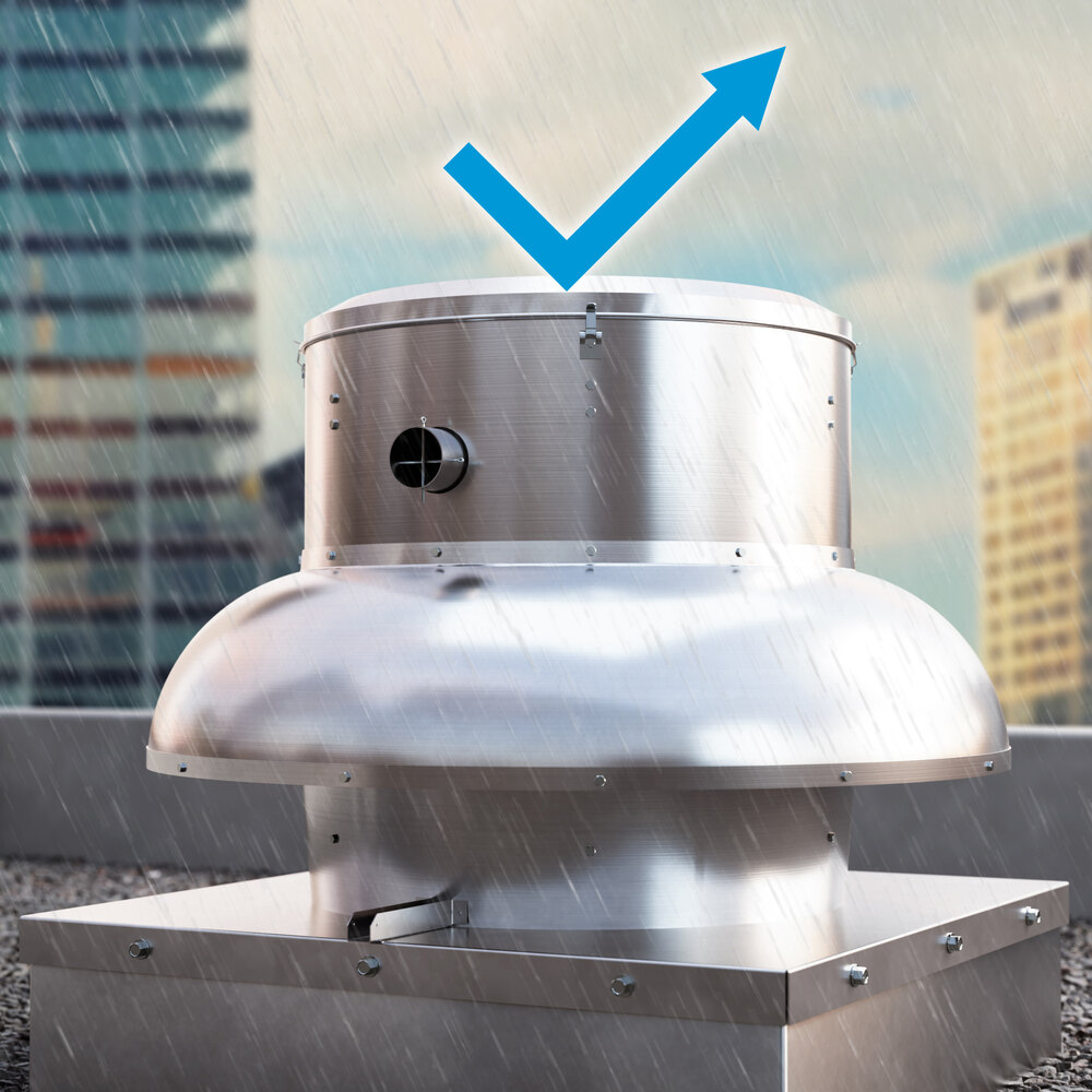 This exhaust fan comes with an integrated drain channel that works to direct liquid away from the fan base, preventing buildup while ensuring long-term performance.