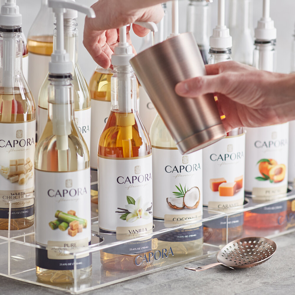 Offering high-end flavoring syrups at a fraction of the price of national brands, Capora makes it easy to cater to all of your customers' tastes. With a wide variety of premium flavoring syrups, their line offers something for every palate and every application. Capora's collection ranges from timeless classics to delightful innovations - perfect for adding a splash of flavor to hot beverages, cocktails, smoothies, and even decadent desserts. Explore all Capora has to offer to keep your establishment well-stocked with the finest flavors at an affordable price.