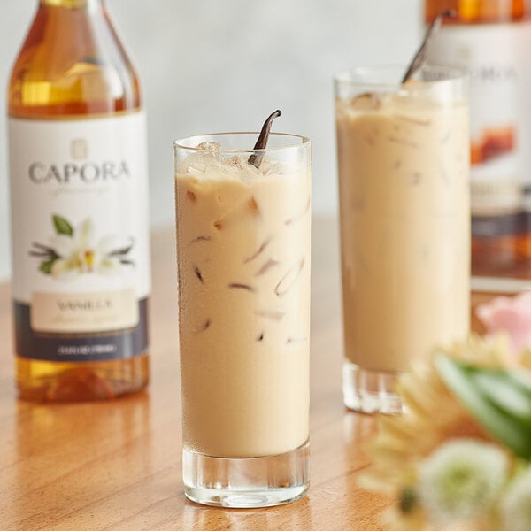 Packaged in a unique bottle with a stylish design, this Capora vanilla flavoring syrup has an attractive shelf presence that makes it a great addition to your restaurant, bar, coffee shop, or cafe. It can be paired with a compatible pump (sold separately) for quick, efficient service during peak serving hours. You can even store the bottle in one of the companion Capora racks (sold separately) to create an eye-catching display. This ready-to-use syrup mixes thoroughly and evenly with both hot and cold beverages.