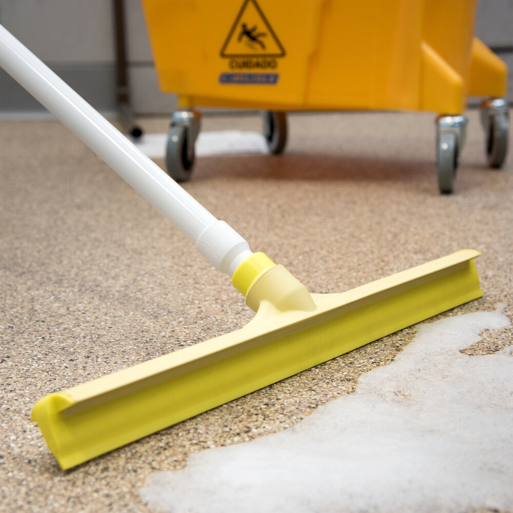 Great for cleaning water, waste, mud, and debris off of smooth, even surfaces, this versatile squeegee features a single rubber blade and a durable all-plastic frame that will not rust or corrode and is flexible enough to clean those hard-to-reach spots in your cafeteria, hospital, or office. Its construction is also non-sparking, making it a great option for cleaning up spills of flammable chemicals. Plus, the single-blade design eliminates bacteria growth for a long-lasting blade that is easy to sanitize after use.