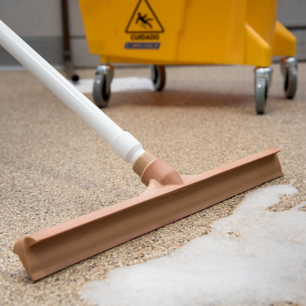 Great for cleaning water, waste, mud, and debris off of smooth, even surfaces, this versatile squeegee features a single rubber blade and a durable all-plastic frame that will not rust or corrode and is flexible enough to clean those hard-to-reach spots in your cafeteria, hospital, or office. Its construction is also non-sparking, making it a great option for cleaning up spills of flammable chemicals. Plus, the single-blade design eliminates bacteria growth for a long-lasting blade that is easy to sanitize after use.