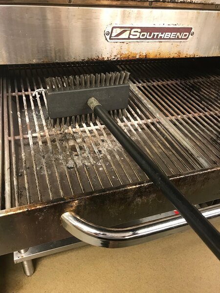 Great brush for my Holstein Event Grill, surprisingly it’s the less aggressive side that removes burn ins better then the more aggressive side, there are more stainless steel bristles in less aggressive side but they are thinner and it is still very aggressive, less bristles in more aggressive side and thicker and it is very aggressive, bristles in less aggressive side after some use form a solid brush line so bristles don’t go through the grill grate.