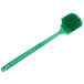 Versatility is the name of the game with this Carlisle 40501EC09 20" Sparta green floating utility / pot scrub brush. It features stiff, staple-set polyester bristles with multiple trim angles to ensure complete surface contact and a thorough clean. The 20" ergonomic, pistol-grip handle will not absorb oils or moisture and is designed to be easy to hold and maneuver. This brush also floats on the surface of water, so you don't have to go digging through hot, dirty dishwater to find it!