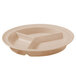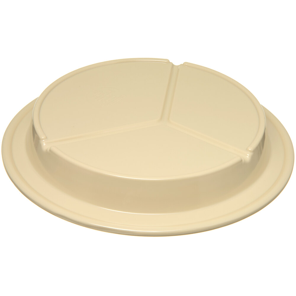 With a subtle tan color, this Carlisle 9" 3-compartment plate is ideal for serving an entree with two separate sides with confidence! With a durable construction, this plate is great for buffets, restaurants, and catered events. The tan coloring draws attention to the presentation and provides a sophisticated background.