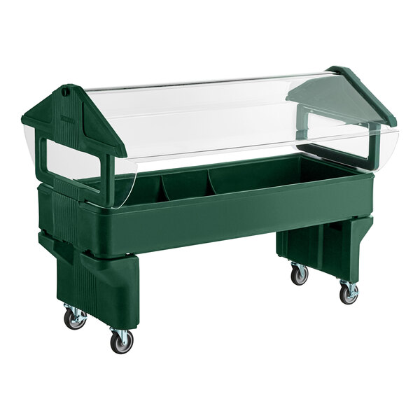 This Carlisle 660808 forest green 6' "Six-Star" portable food bar with open base provides both durability and food safety in your establishment. This salad bar can hold up to five 12" x 20" food pans (up to 6" deep). This unit also comes with a faucet-type drainage plug for simple melt water removal.