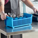 This light weight, Carlisle blue rack is the perfect addition to your sanitizing system. Plus, the handleless design saves space in dish machines and on storage shelves. Flatware racks add efficiency and organization to your warewashing system to help you save time and labor!