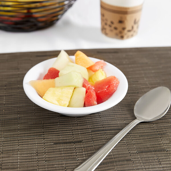 Perfect for service in schools, retirements communities, healthcare facilities, or casual dining restaurants, this bowl is a durable addition to your establishment. Thanks to its 5 oz. size, it's the ideal option for serving appetizers, small salads, fruit, or oatmeal. Part of the Kingline collection, this bowl withstands the daily rigors of a high-volume kitchen.