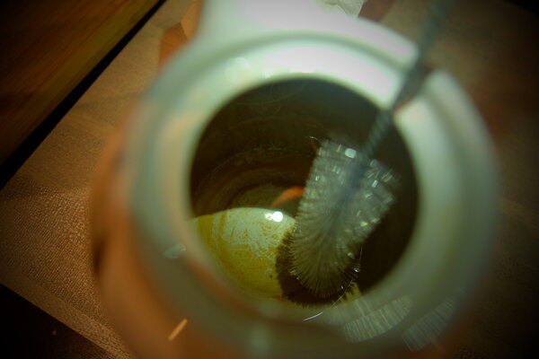 We use this brush to clean inside of our small squeeze bottles. It gets down into the corners with no issue at all and picks up all residue.