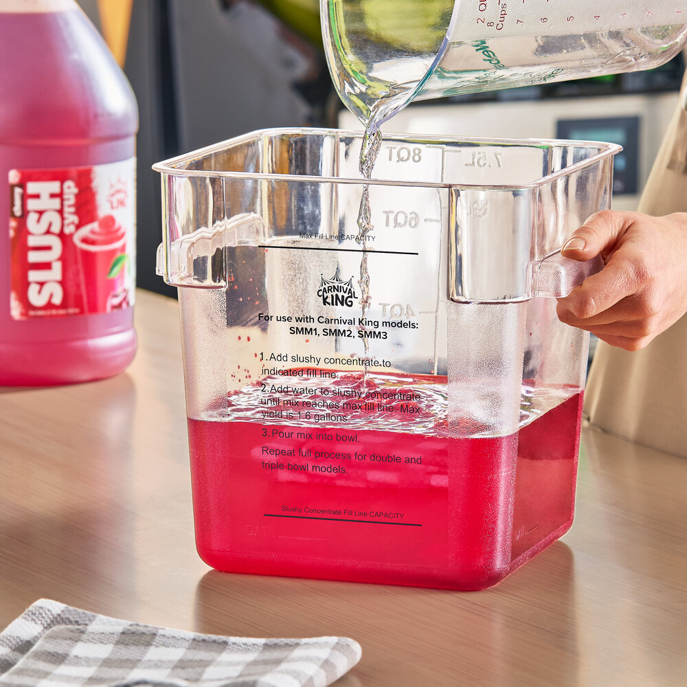 Guests will start craving your colorful slushies as soon as they see them at your carnival cart or concession stand. Keep up with the demand for these refreshing treats with this Carnival King 1 gallon slushy syrup! With the large amount of servings per container, your venue will be in good supply. Simply pair it with a compatible pump for fast, efficient service.