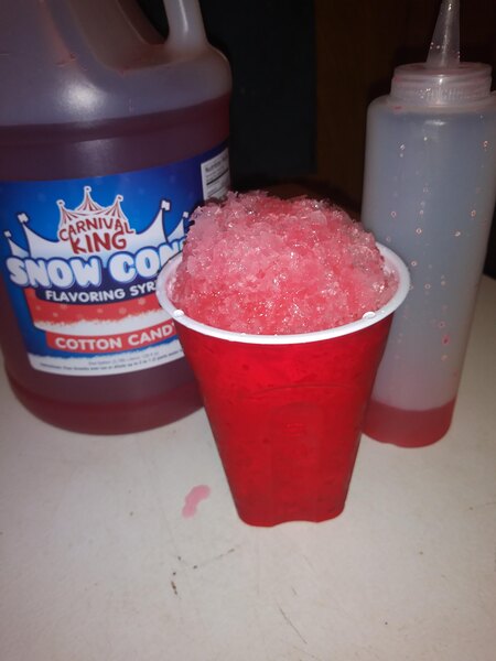 My 13 year old daughter saved up her money and bought her very own concession trailer this year! Currently serving snow cones. All the flavors we ordered were Carnival King and numerous customers have commented on the taste and quality of these syrups, but Cotton candy has been by far the front runner. Best seller for sure!