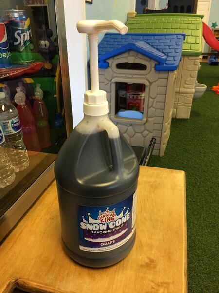 Colorful and flavorful snow cones are sure to draw customers to your concession stand or carnival cart. Keep up with the demand for these refreshing frozen treats with this Carnival King 1 gallon grape snow cone syrup! With the large amount of servings per container, your venue will be in good supply.