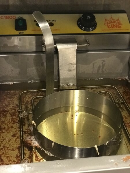 Simply fill the mold by drizzling funnel cake batter within the ring, fry, then lift off the mold ring and let the cake float free.