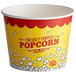 Featuring a classic round shape, bright colors, and playful popcorn graphics, this bucket makes a perfect addition to your concession stand, movie theater, or snack bar. The colorful design is sure to catch your customers' attention and help boost impulse buys!