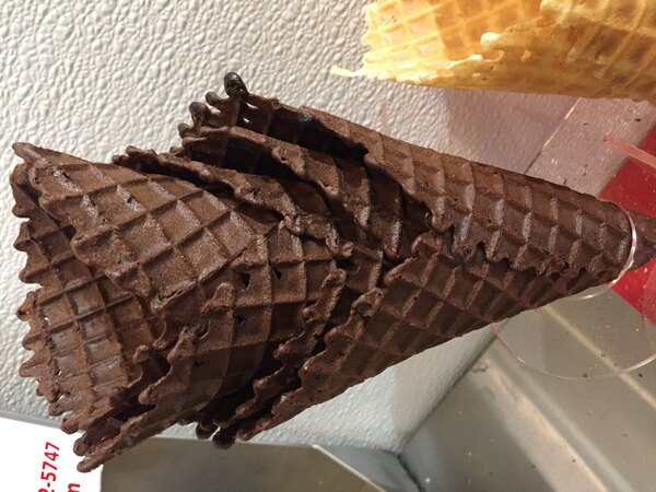 Waffle cones are the top selling cones used at the store. some customers enjoy the taste of chocolate and what better way to have ice cream that complimenting it with some vanilla flavored ice cream.