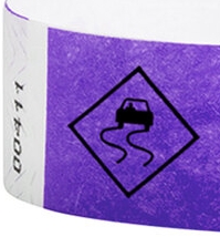 This wristband features a convenient adhesive strip closure and patented die-cut design that makes it easier to identify any tampering. Its eye-catching neon purple color is readily identified by entrance or security staff for more orderly, secure attendance.