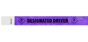 Ideal for crowd management at a variety of events and venues, this wristband's "DESIGNATED DRIVER" message makes it quick and easy to identify individuals who are designated drivers and should not be served alcoholic beverages. This item is offered in a variety of colors, so colors can be switched on a daily basis as needed.