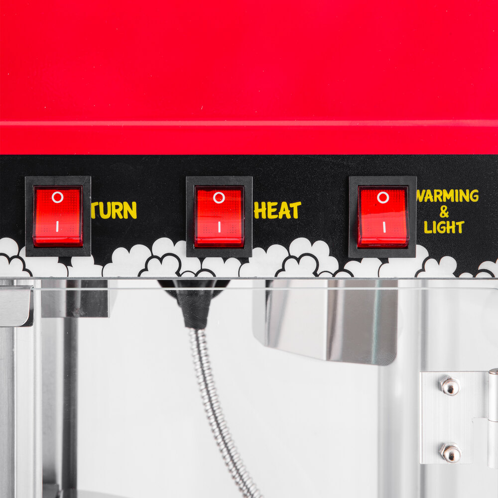 This machine looks nice, and seems fairly well built. We were lured in by an exceptional price for the size of the kettle, versus the competitor brands. Unfortunately, this popper is slow to heat up and the kettle cannot handle the volume advertised. We consistently have problems with popcorn binding up inside the kettle and burning. The kettle walls and cover are insufficiently designed to evacuate the popcorn. The motor for rotation is also not strong enough, and once the binding begins the cattle will be getting to rock back-and-forth in the case as the gears lock up. We spent significantly more money to buy a different popper from another brand and are incredibly impressed by the differences in the machine. We should never of bought this Carnival King junker.