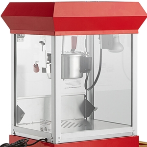 An excellent kit for small weddings, birthday parties, catering events, fundraising events, and more, this popper comes with pre-portioned ingredients, popcorn bags, a cart, and everything you need to keep your popper clean! It also features a small plastic scoop and measuring spoons that make operation a breeze right out of the box! Featuring 470W of power, this machine will keep hot popcorn flowing as quickly as your customers can eat it up! The unit's bright red stainless steel frame and printed graphics will catch the eye of passing customers and draw them in for a delicious snack.