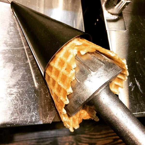 Upgrade your ice cream supplies and offer fresh-made waffle cones as an appealing alternative to standard cake cones or plastic dishes. Waffle cones enhance the aroma and taste of your ice cream servings. Plus, their unmatched appearance boosts impulse sales! The enticing aroma of freshly made waffle cones will help potential patrons follow their noses to your establishment.