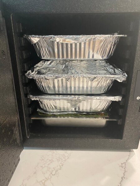 This product was amazing!!. I was able to fit five full size foil pans inside and it kept the food warm. I wish I purchased more than one. Definitely will recommend