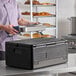 With a top loading design, this carrier offers a variety of carrying options, holding up to 1 full-size 8" deep food pan, a 6" deep and 2 1/2" deep pan, one 4" deep pan and two 2 1/2" deep pans, or up to three 2 1/2" deep pans.