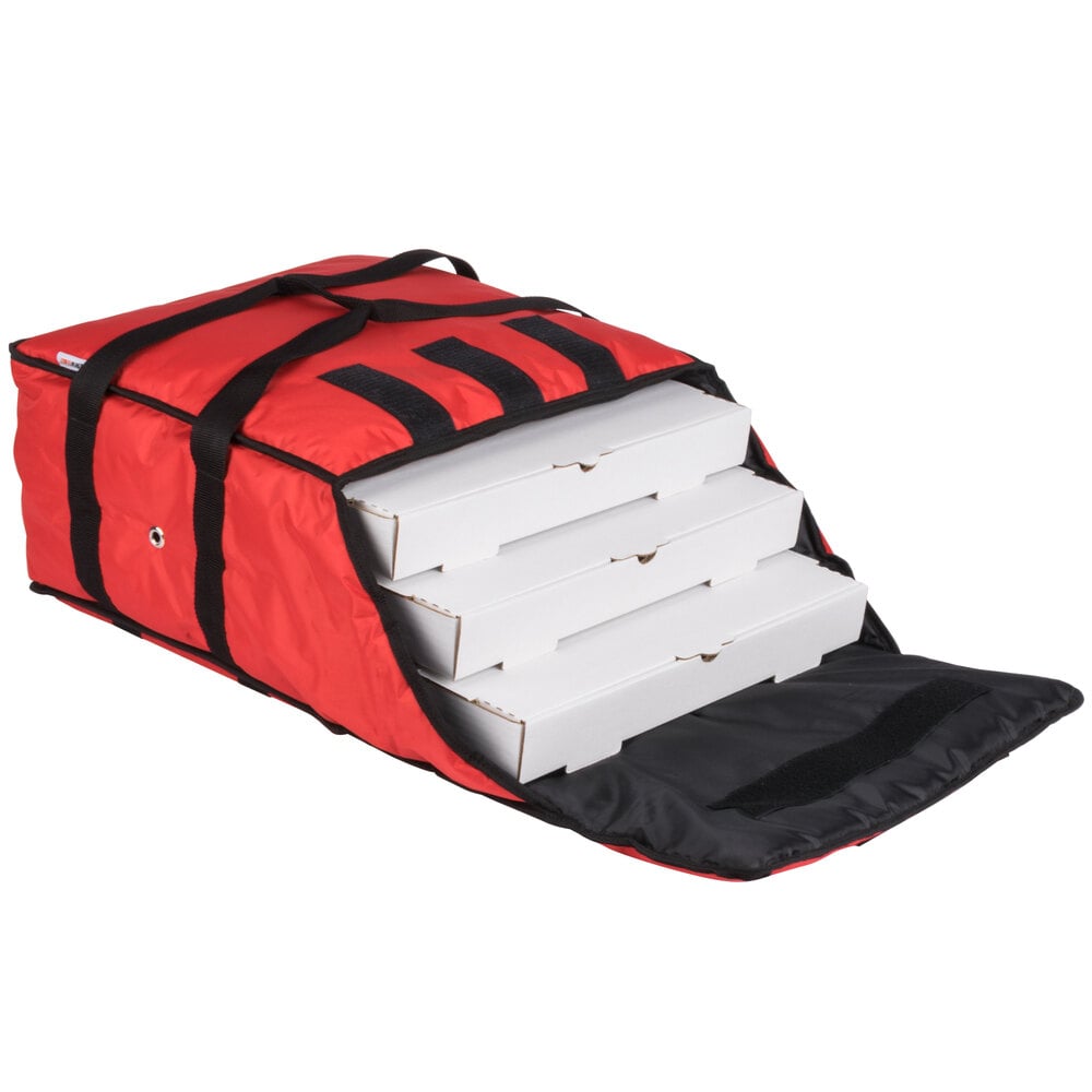 CaterGator Dash Insulated Pizza Delivery Bag Red Soft-Sided Heavy-Duty Nylon 18 1/2" x 18 1/2" x 9 1/2" - Holds Up To (3) 12" or 14" Pizza Boxes