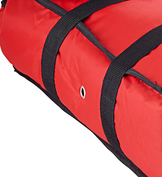 This pizza delivery bag features grommets to allow moisture to escape, preventing your boxes and pizzas from getting soggy and ensuring they stay crisp and fresh. Hook and loop fasteners allow for opening and closing of the bag. These hook and loop fasteners remain secure during transportation, preventing pizzas from shifting from pizzeria to destination.