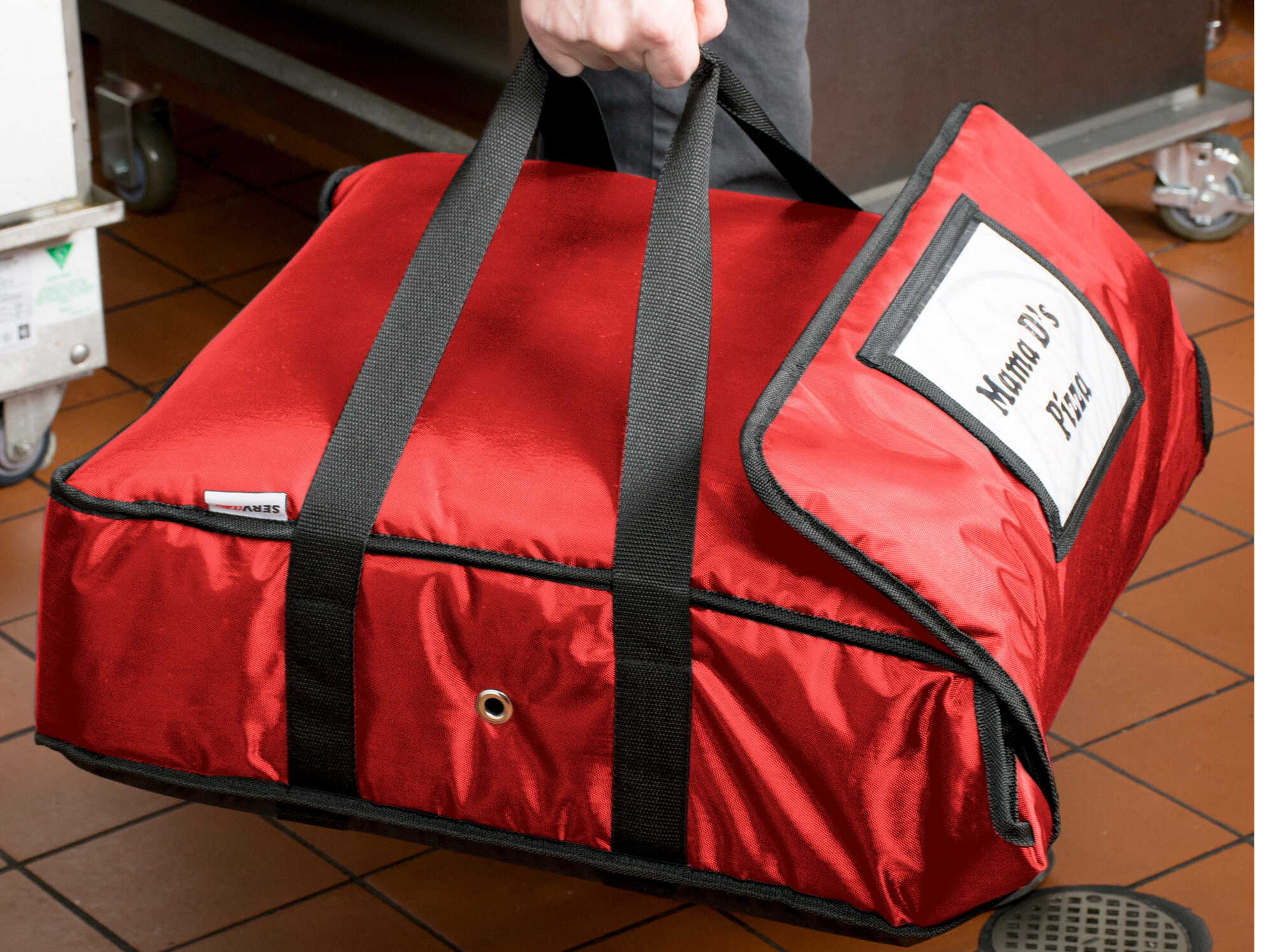 Heavy-duty, reinforced straps promote safe, comfortable lifting and will last through repeated use. A hardboard bottom and a wrist strap on the underside of the bag ensure stability while transporting any number of pizzas.